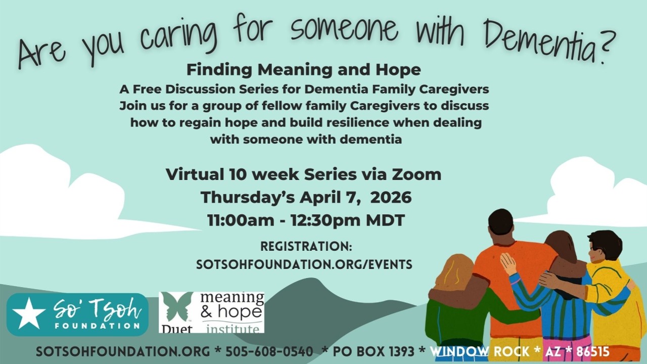 The So' Tsoh Foundation is proud to present a FREE discussion series for dementia family caregivers. In the Finding Meaning and Hope series, you will learn skills that can help you stay strong, healthy, resilient and positive as you navigate your caregiving journey with healing and hope. This 10-week 90 minute, session series features videos and discussion based on the groundbreaking book, Loving Someone Who Has Dementia.